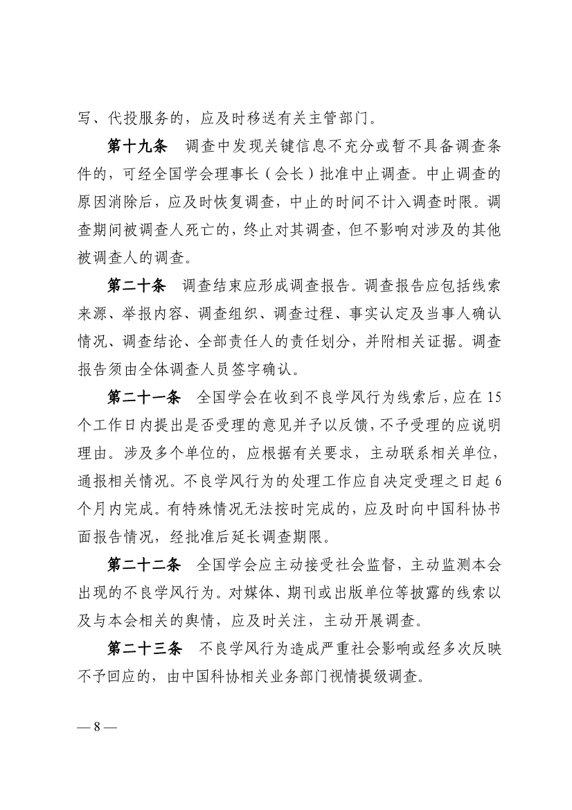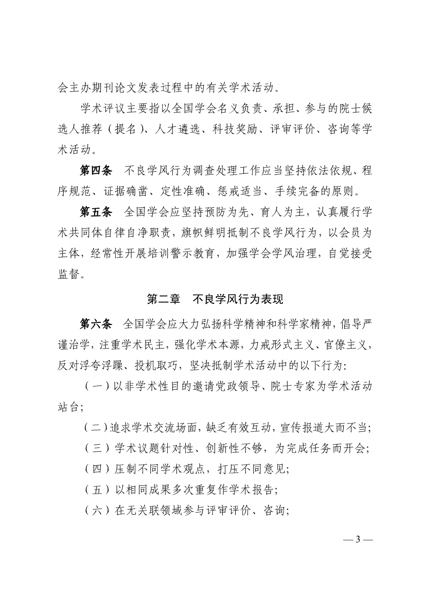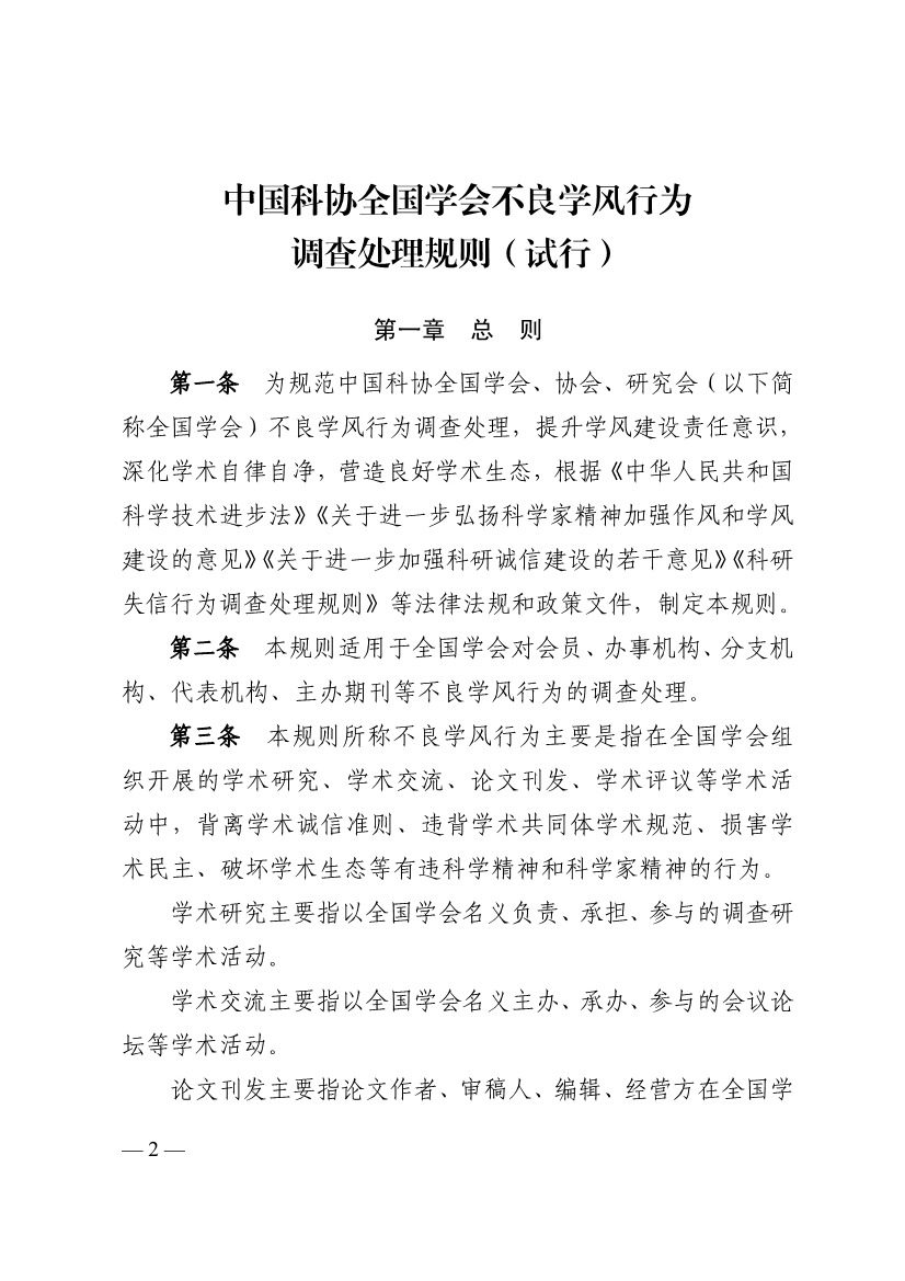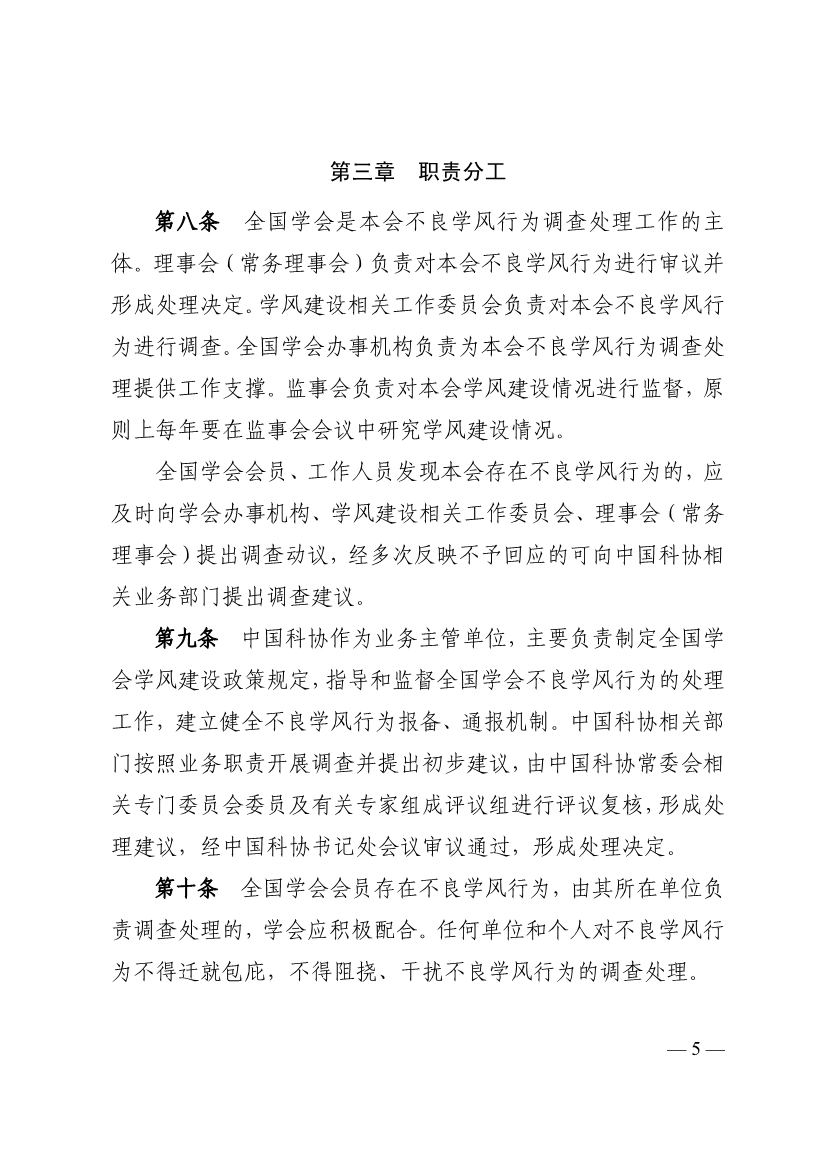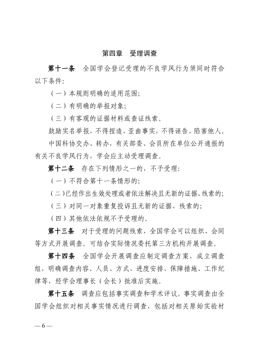 中国科协全国学会不良学风行为调查处理规则(试行)