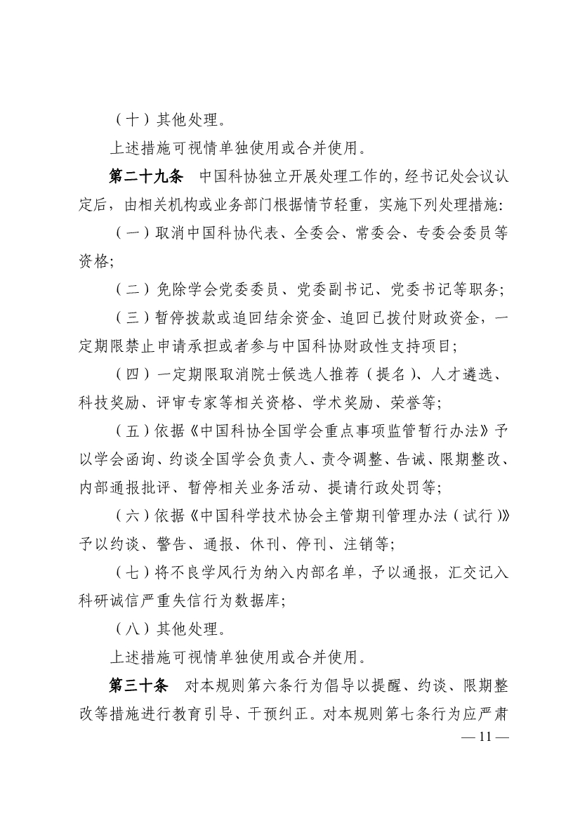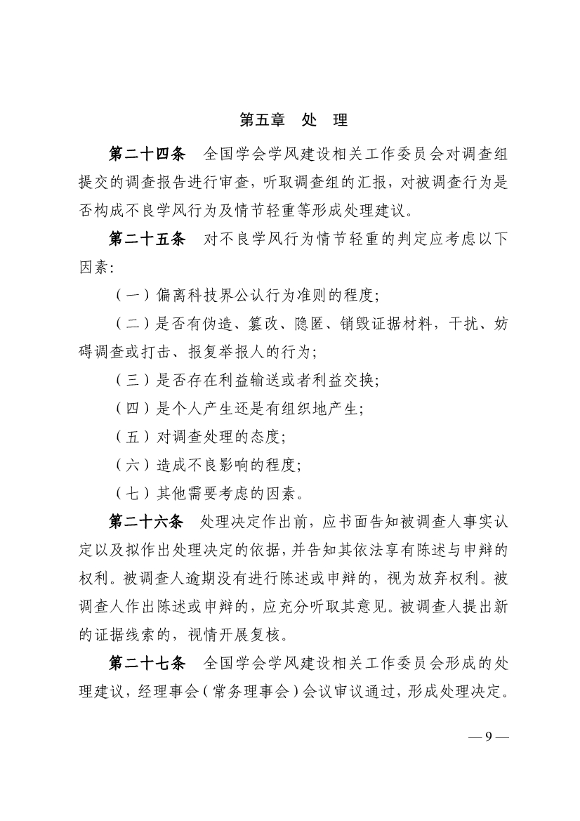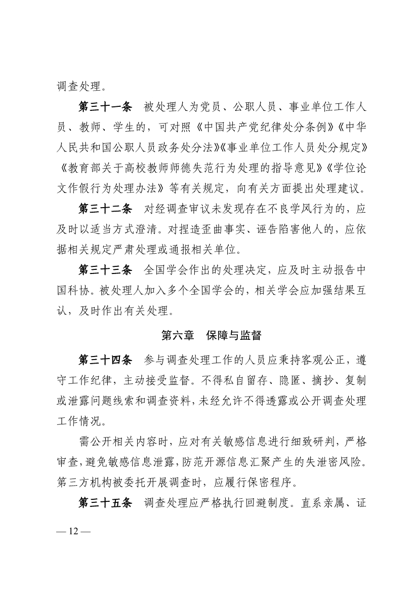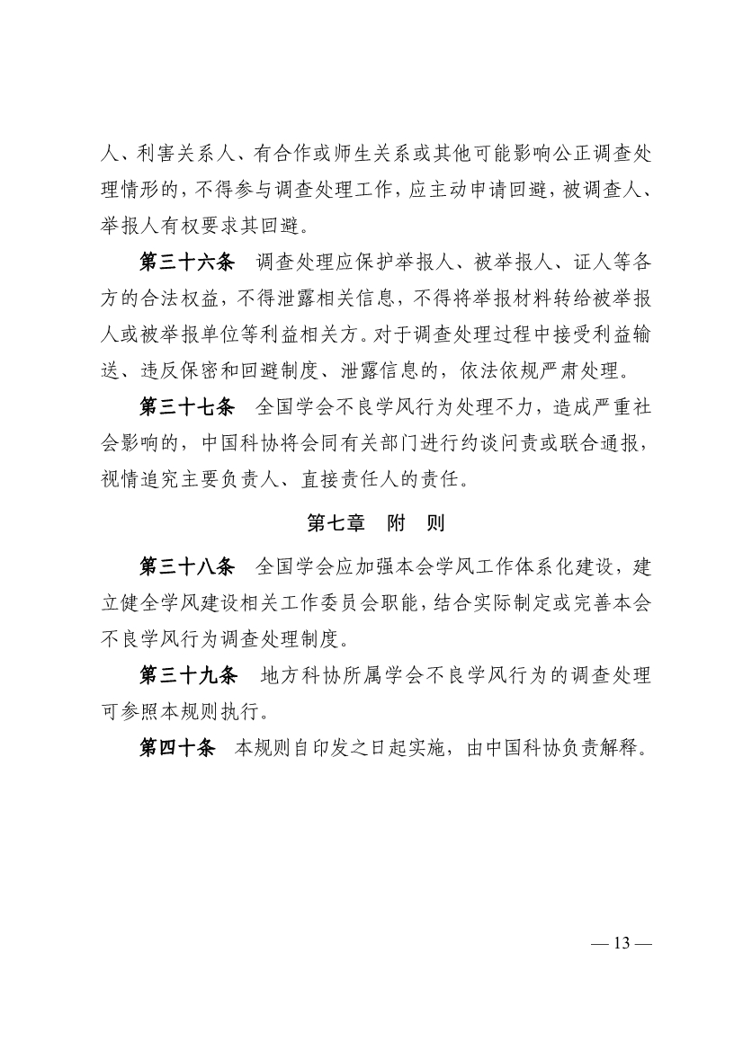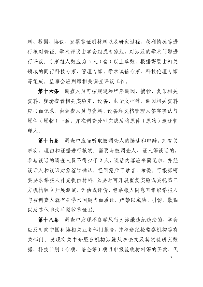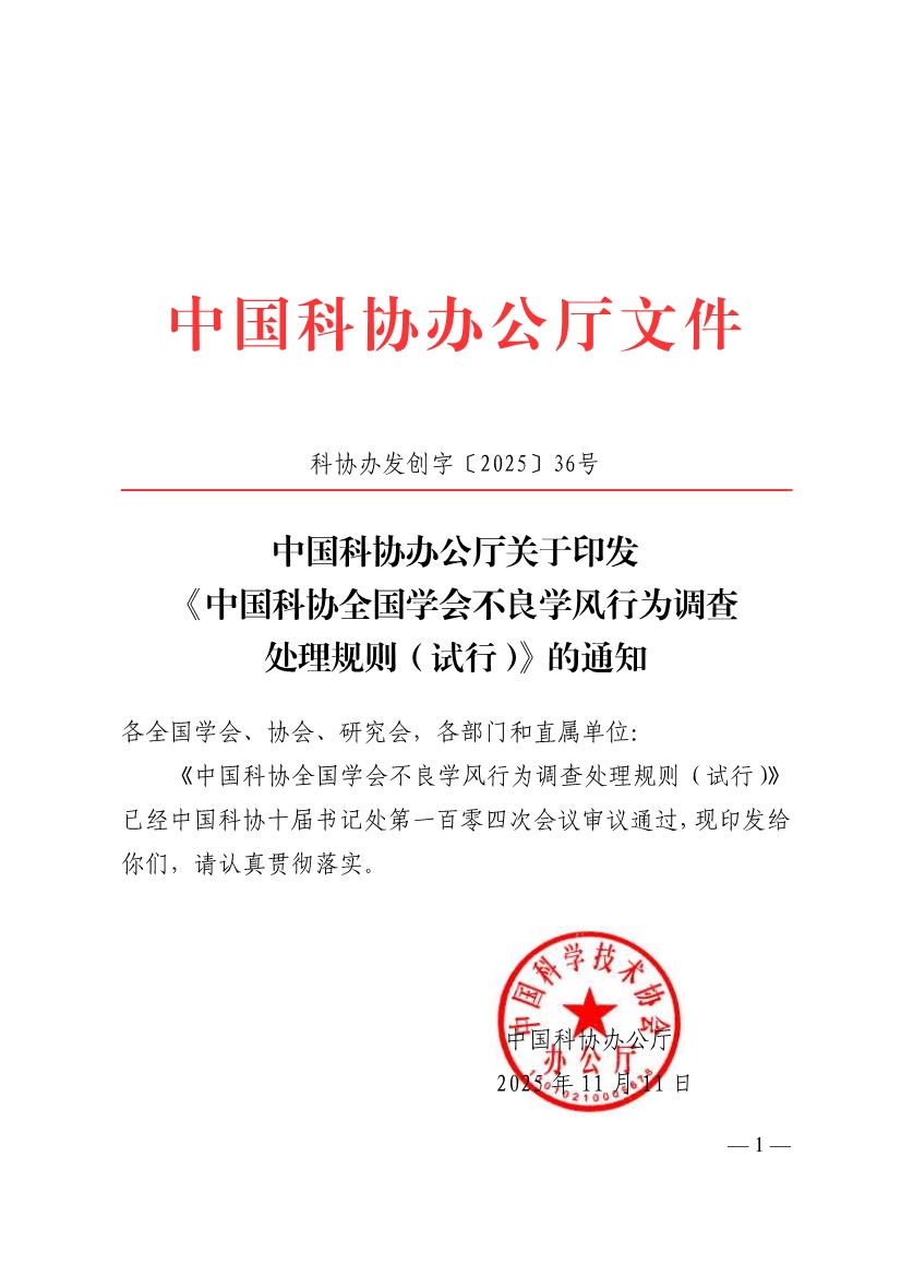中国科协全国学会不良学风行为调查处理规则(试行)